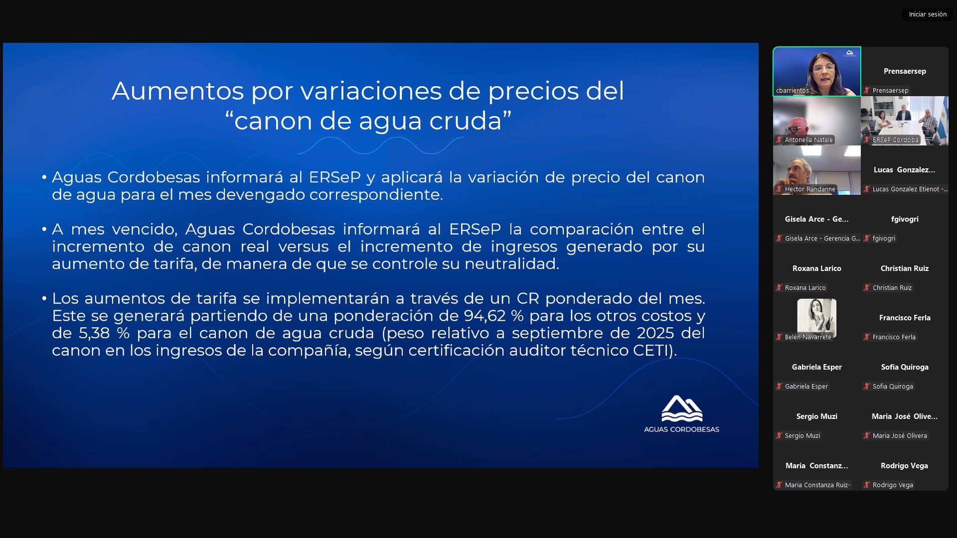 En Audiencia Pública Virtual Aguas Cordobesas solicita revisión extraordinaria por redeterminación en la estructura de costos